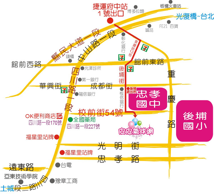 ★台北新莊過來 > 先找板橋市四川路一段170號(OK便利商店),對面即為校前街(路口為全國藥局)