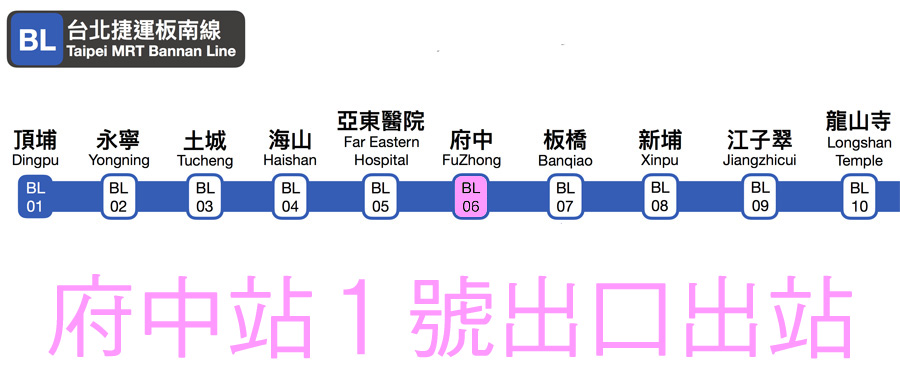 台北捷運板南線BL06:板橋府中站下車1號出口出站,步行約15分鐘即可到達